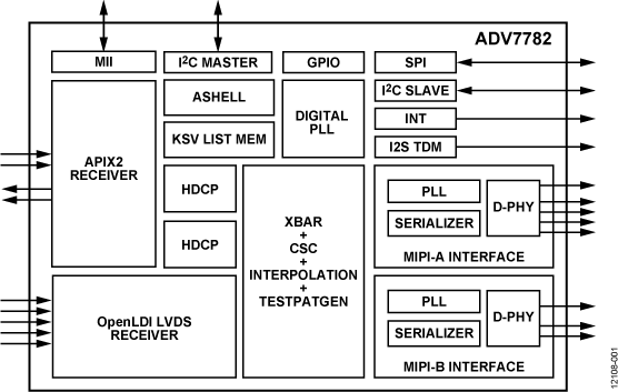 APIX2 Receiver with LVDS, HDCP, and MIPI Support
