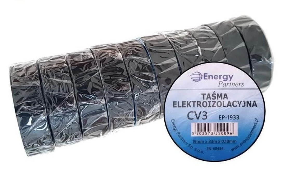 CV3 (EP-1933) CZA10 - taśma elektroizolacyjna PCW (zestaw 10 rolek 19mm x 33m x 0.18mm) czarna