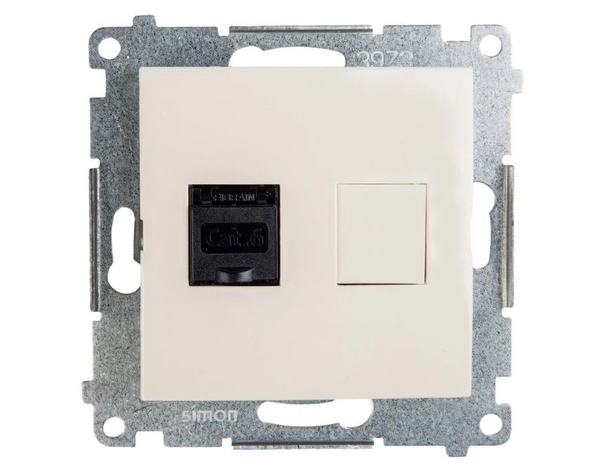 6. SIMON 54 Gniazdo komputerowe RJ45 kremowe kat.6 z przesłoną przeciwkurzową D61.01/41 KONTAKT SIMON 74.41