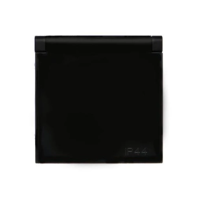 Simon 54 Pokrywa gniazda do wersji IP44 z przesłonami, klapka czarna *Wymagana uszczelka IP44 do ramki DGZ1BUZP/49