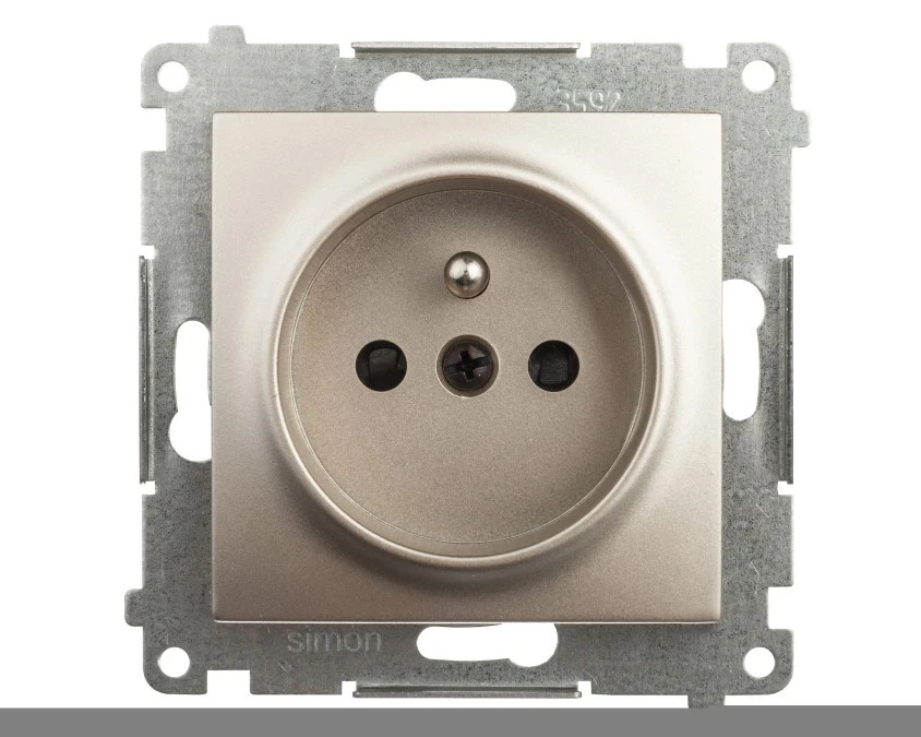 SIMON 54 Gniazdo pojedyncze z uziemieniem złoty mat z przesłonami DGZ1Z.01/44 KONTAKT SIMON