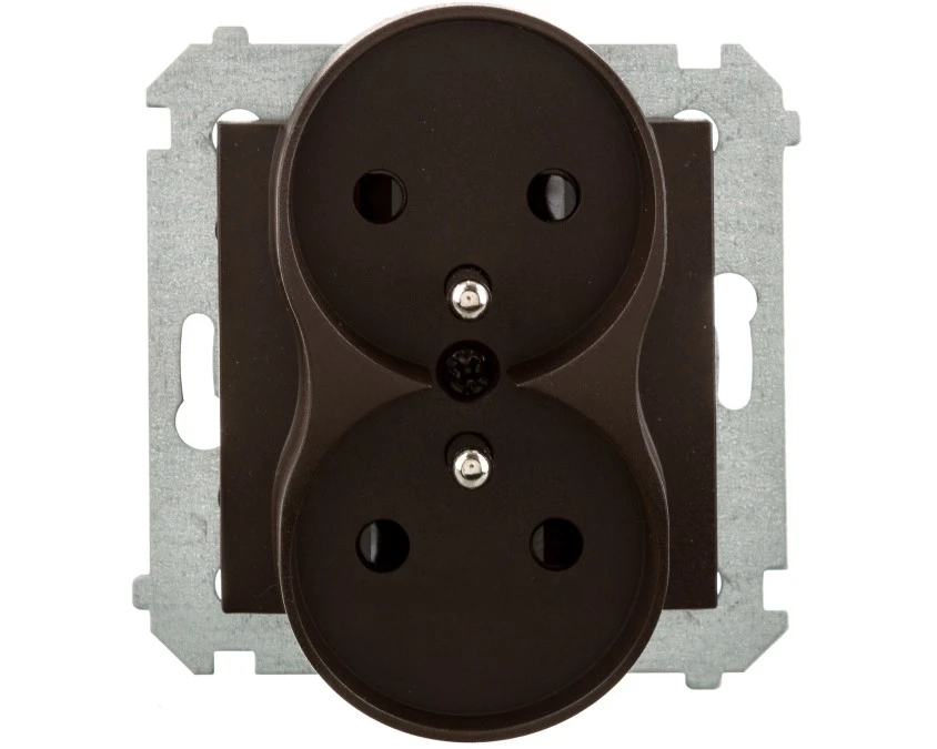 SIMON 54 NATURE Gniazdo podwójne wtyczkowe z uziemieniem z przesłonami do ramek NATURE (moduł) zaciski śrubowe brąz mat DGZ2MZN.
