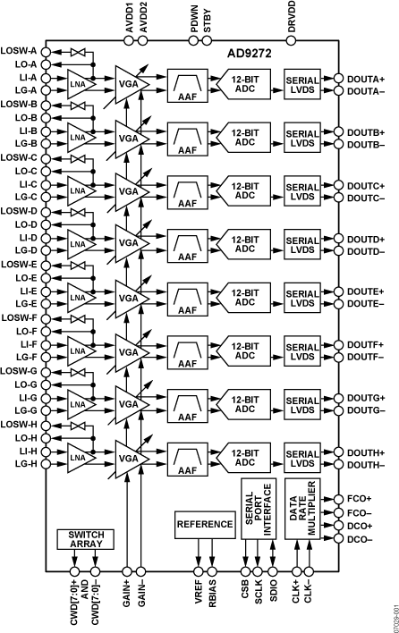 Octal LNA/VGA/AAF/ADC and Crosspoint Switch