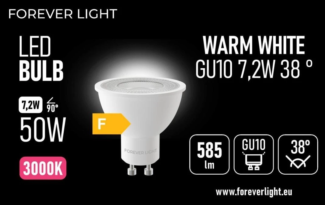 4. Żarówka LED GU10 38 7.2W 585lm 3000K klasa F Forever Light 4.98