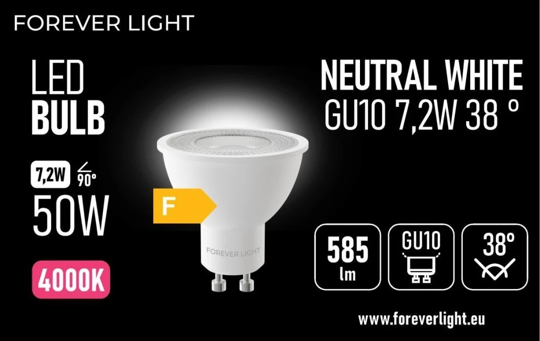 Żarówka LED GU10 38 7.2W 585lm 4000K klasa F Forever Light