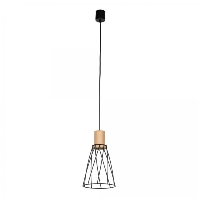 Lampa wisząca pojedyncza MODESTO WOOD SOSNA z drucianym czarnym kloszem na GU10 10155 TK Lighting