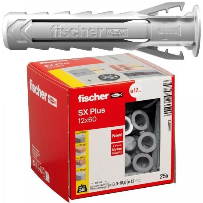 7. Kołki rozporowe uniwersalne SX Plus 12x60mm do wszystkich pełnych materiałów FISCHER 25szt 29.16