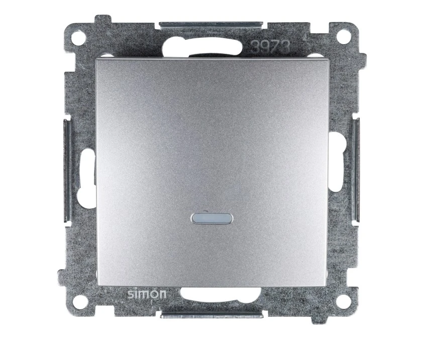 Simon 54 Łącznik jednobiegunowy z podświetleniem, szybkozłącza, srebrny mat DW1L.01/43