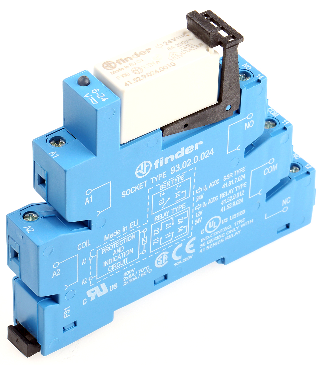 13. Przekaźnik z interfejsem 24V ac/dc Finder DPDT Szyna DIN bieguny 2 Śruba 173.69