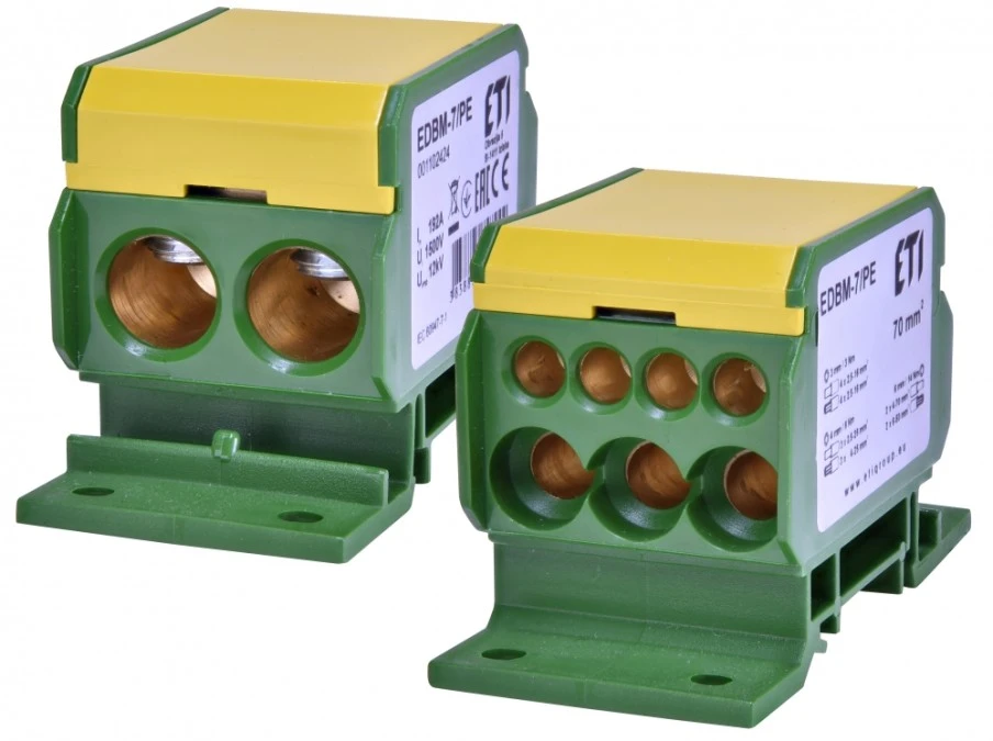 Blok rozdzielczy 1-biegunowy 192A (2x4-70 mm2/2x4-35 mm2+3x25-25 mm2) TH35 żółto-zielony EDBM-8/PE 001102427 ETI