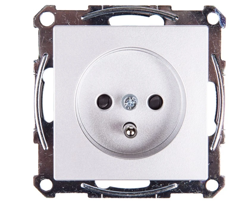 SEDNA DESIGN & ELEMENTS Gniazdo podwójne z uziemieniem z przesłonami do ramek Design srebrne aluminium SDD113275 SCHNEIDER ELECT