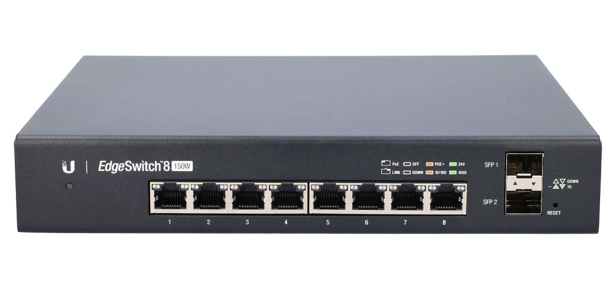 8. Ubiquiti ES-8-150W | Switch | EdgeMAX EdgeSwitch, 8x RJ45 1000Mb/s PoE+, 2x SFP, 150W 1755.00