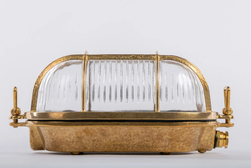 14. Oprawa mosiężna OVAL 47 ECO, E27, 40W, klosz przeźroczysty-szkło, IP64, siatka mosiężna A47 160.56