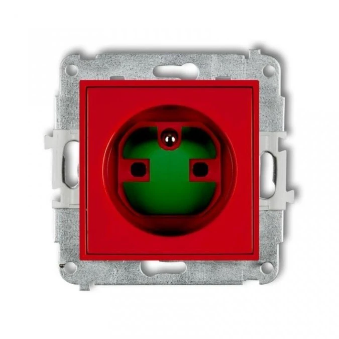 ICON Mechanizm gniazda pojedynczego z uziemieniem 2P+Z DATA z kluczem czerwony IGZK