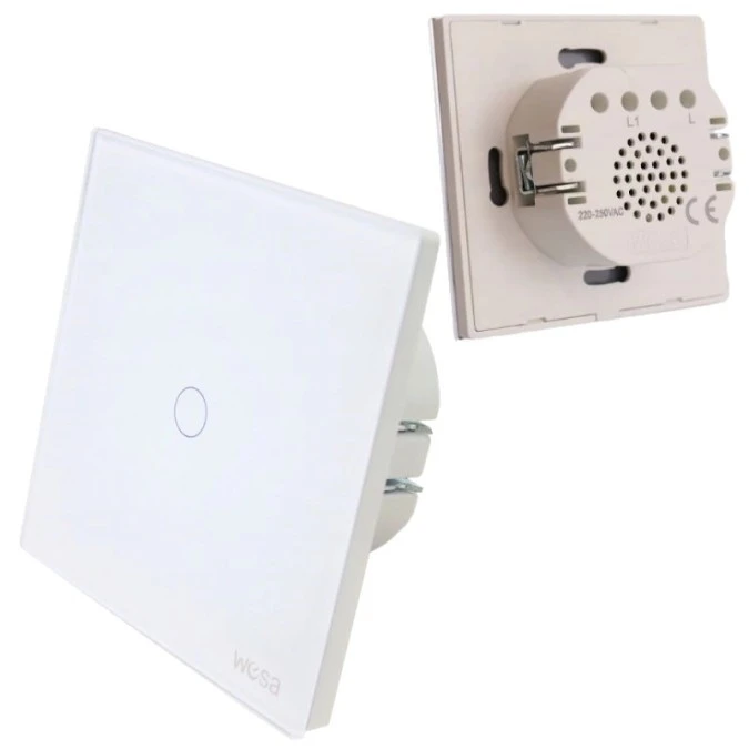 15. Włącznik Światła Łącznik Pojedynczy Dotykowy Podtynkowy Szklany Biały WESA 45.01