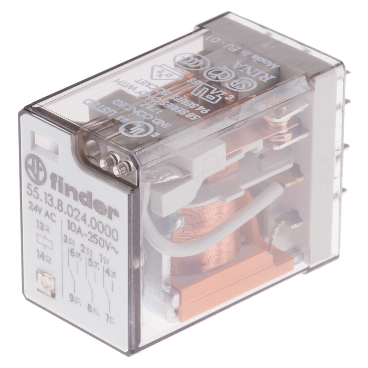 1. Przekaźnik mocy 24V ac DPDT Finder 1.2W, Wciskane 320Ω Szybkie łączenie 54.75