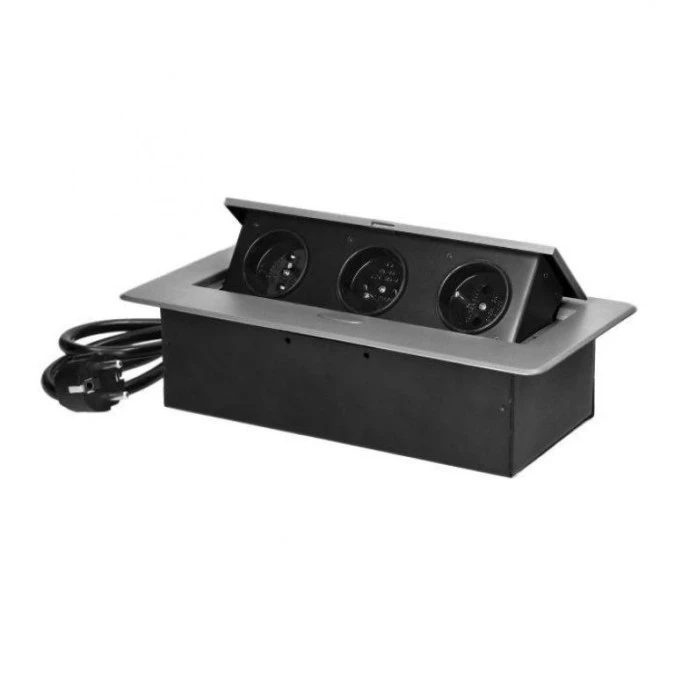 Gniazdo meblowe wpuszczane w blat z płaskim frezowanym rantem i przewodem 1,5m, 3x2P+Z, srebrne,OR-GM-9033/G