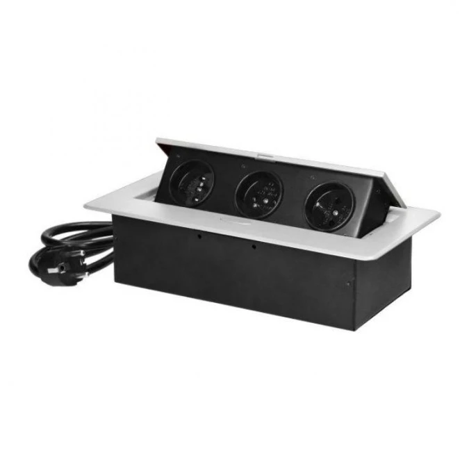 13. Gniazdo meblowe wpuszczane w blat z płaskim frezowanym rantem i przewodem 1,5m, 3x2P+Z, białe,OR-GM-9033/W 160.20