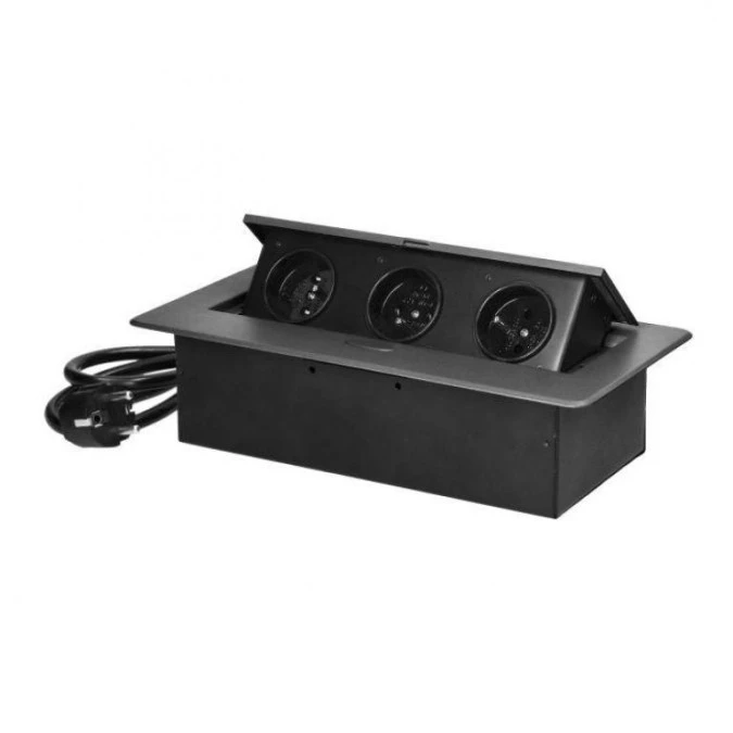 10. Gniazdo meblowe wpuszczane w blat z płaskim frezowanym rantem i przewodem 1,5m, 3x2P+Z, czarne,OR-GM-9033/B 155.09