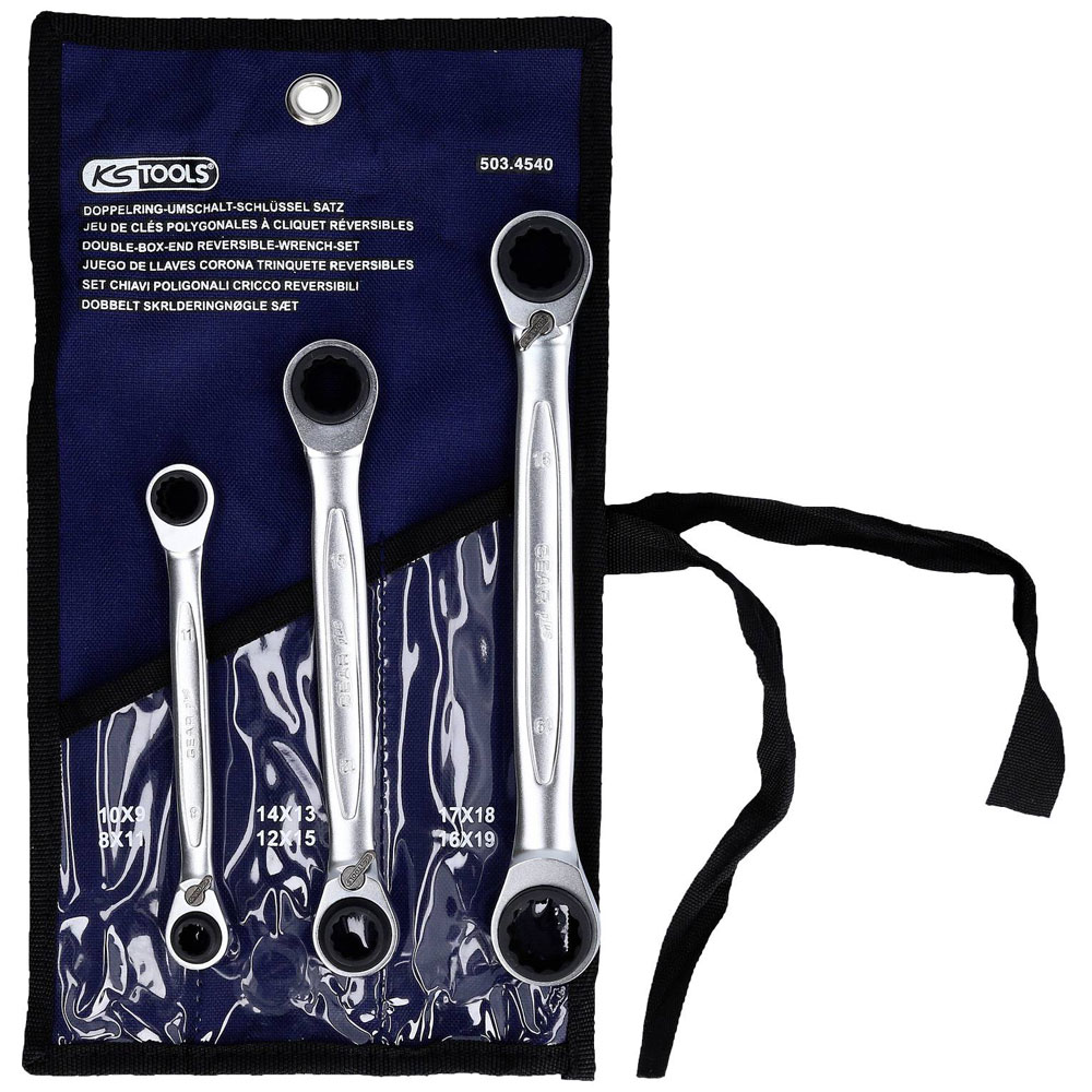 KS Tools 503.4540 4 In 1 Gearplus Reversing Double Ratchet Ring Spanner Set 3 Pc