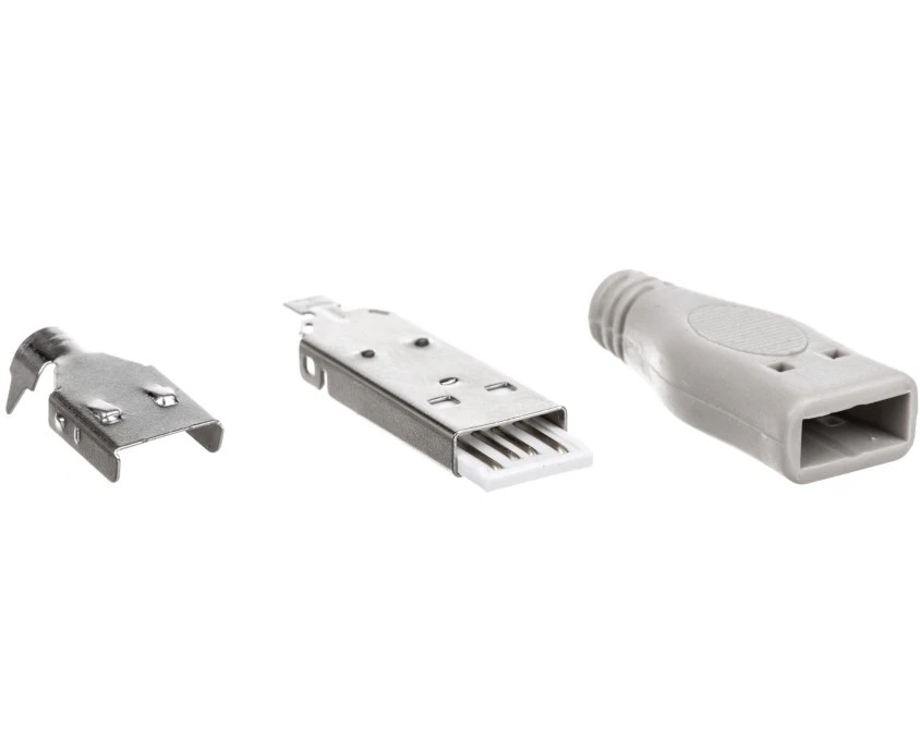 Wtyk; USB A; WAL; USB 2.0; szary; biały; na przewód; proste; lutowany; nikiel; Goobay; RoHS