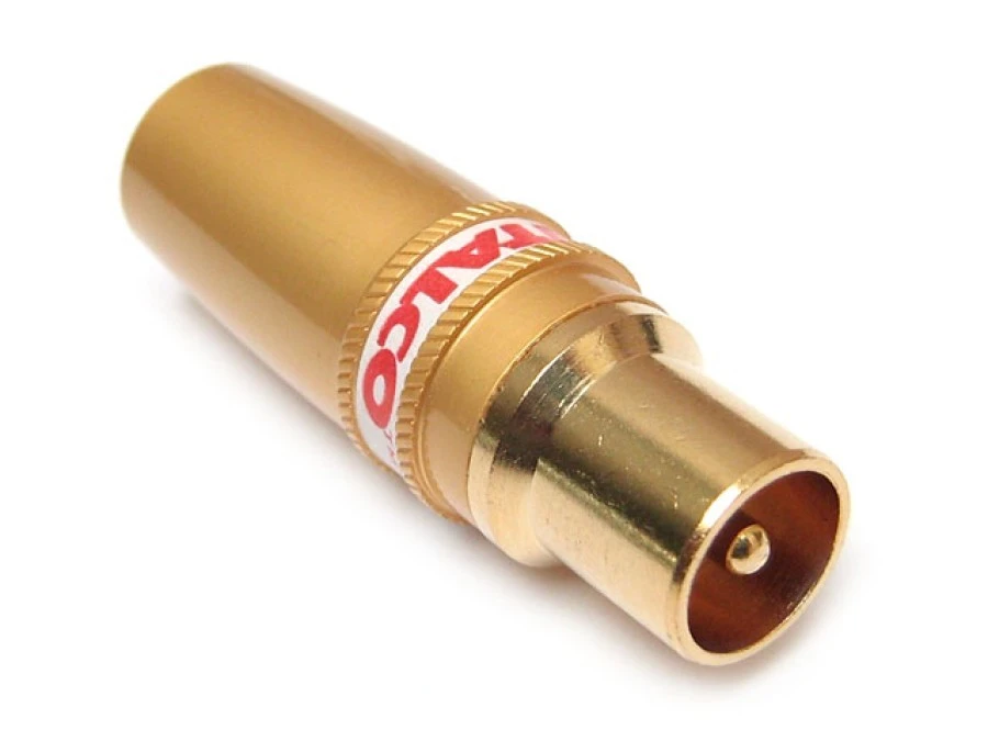 5. Profesjonalny wtyk antenowy IEC prosty złoty na kabel AW26 7,8mm 23.41