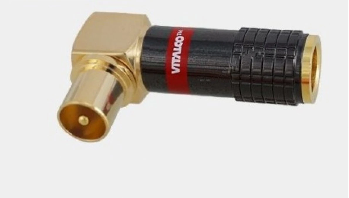 8. Profesjonalny wtyk antenowy IEC kątowy złoty na kabel AW27 7,8mm 26.26