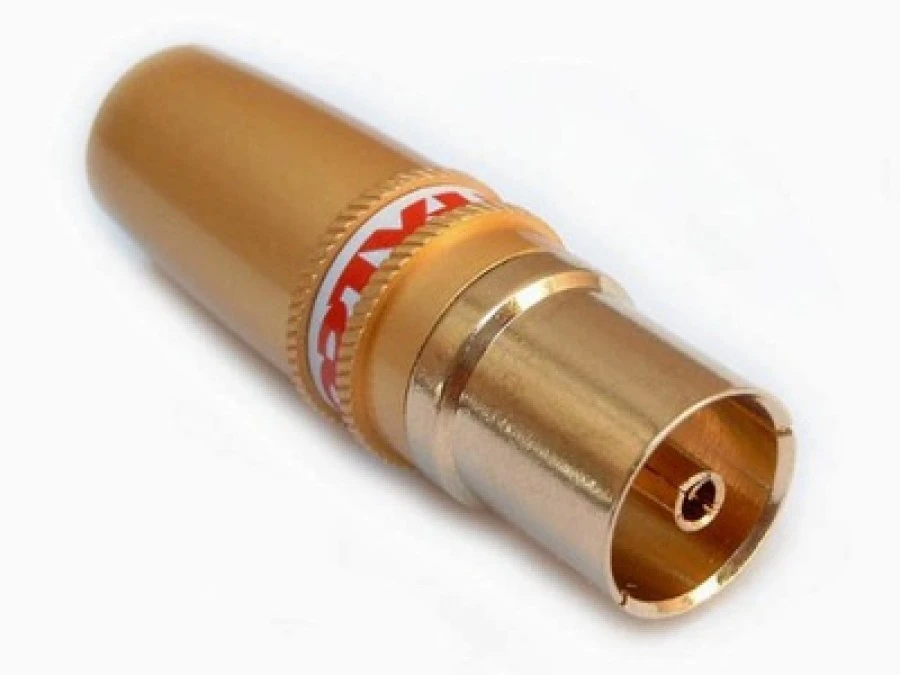 Profesjonalny wtyk antenowy IEC prosty złoty na kabel AW28 8mm