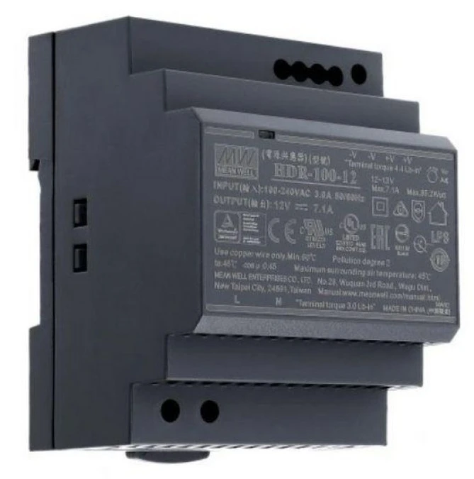 8. HDR-100-12 Switching power supply, DIN mounting, 85,2W 12V, 7,1A 117.28