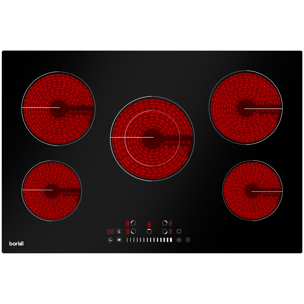 Baridi DH175 Integrated Ceramic Hob with 5 Cooking Zones 77cm - Black Glass