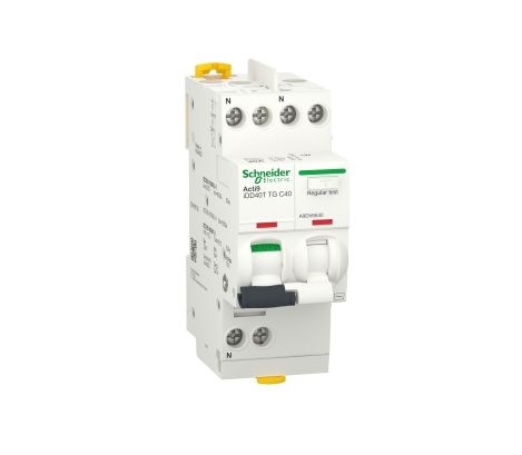 7. Wyłącznik różnicowoprądowy z członem nadprądowym RCBO, Typ C, 1P+N, 40A, 30mA, Schneider Electric, Acti9 iDD40T 2656.91