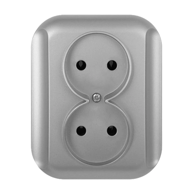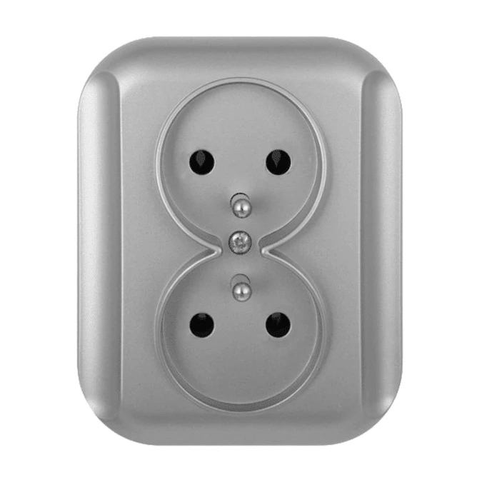 TOPAZ Gniazdo podwójne podtynkowe bez uziemienia GPt-5t srebrne