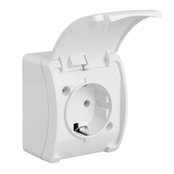 11. Gniazdo zasilające pojedyncze natynkowe hermetyczne IP44 białe z klapką biała 2P+Z 16A HERMES ELEKTRO-PLAST NASIELSK 17.81