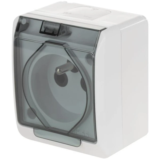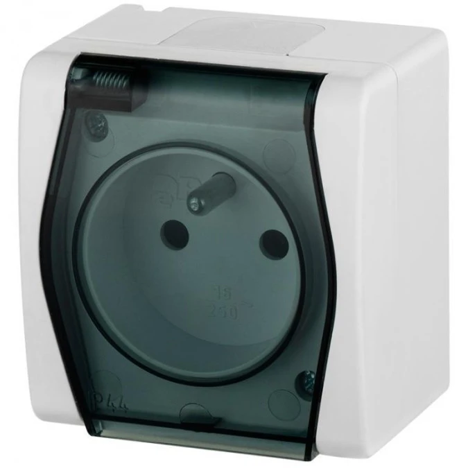 15. Gniazdo zasilające pojedyncze natynkowe hermetyczne IP44 białe z pełną klapką transparentną 2P+Z 16A HERMES2 ELEKTRO-PLAST NASIE 18.63
