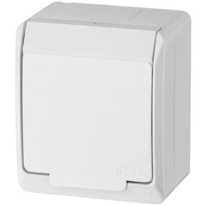 Gniazdo zasilające pojedyncze natynkowe hermetyczne IP44 białe z klapką biała 2P+Z 16A HERMES ELEKTRO-PLAST NASIELSK