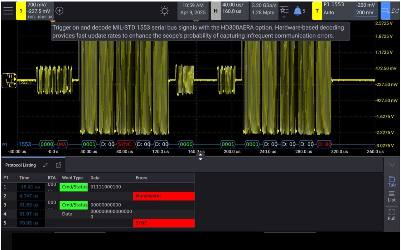 Oprogramowanie do oscyloskopów, Oprogramowanie lotnicze i obronne, Oscyloskopy serii HD3