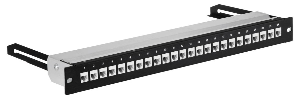 Patch panel pusty wysuwany RACK 19 1U na 24 moduły keystone kat.5e, 6, 6a UTP czarny