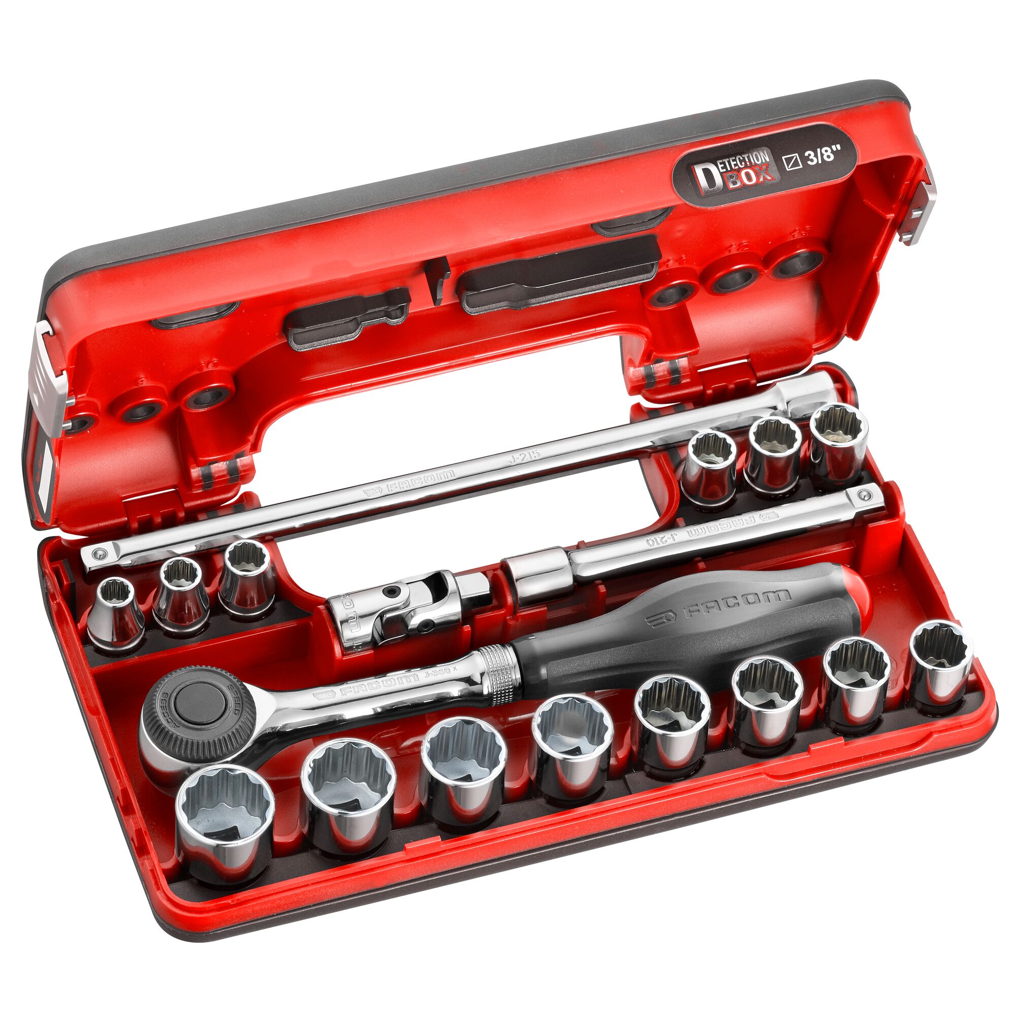 Zestaw nasadek rozmiar napędu 3/8 cala elementy: 18 Facom typ napędu Kwadratowy gniazdo 8 , 9 , 10 , 11 , 12 , 13 , 14