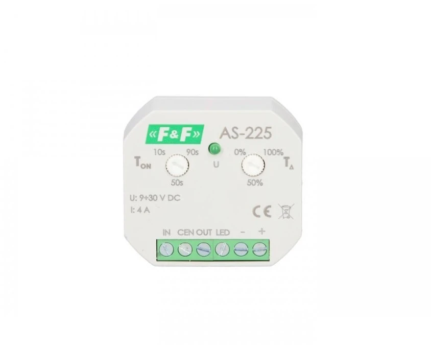 15. Kaskadowy sterownik oświetlenia schodowego do puszki fi60 4A 10-90s 9-30V DC AS-225 86.10