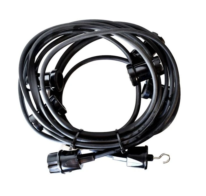 GIRLANDA OGRODOWA, ŁAŃCUCH ŚWIETLNY IP44 CZARNA 11M + HAK KOŃCOWY G-CZ-10-H/IP44