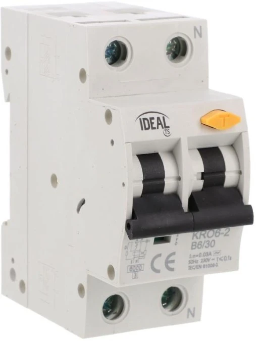 6. Wyłącznik różnicowo-nadprądowy 2P B 6A 0,03A typ AC KRO6-2/B6/30 23220 67.32
