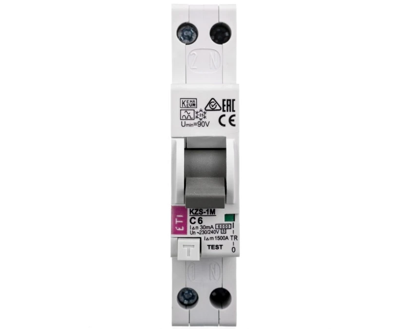 1. Wyłącznik różnicowo-nadprądowy 1P 6A C 0,03A typ A (zas. od dołu) KZS-1M 002175221 136.32