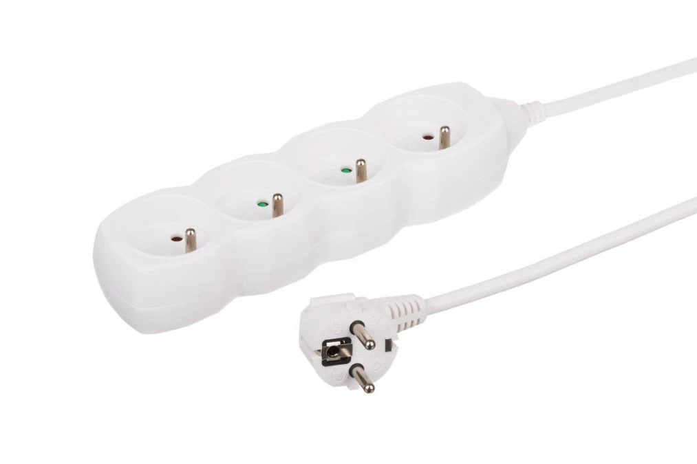14. Przedłużacz 4-gniazdowy, 3m biały, z wyłącznikiem, 3x1,0mm OWY 35430 24.58