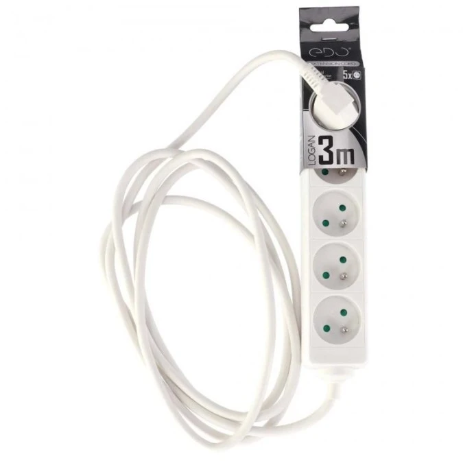 12. Przedłużacz domowy przenośny LOGAN White 3 - krotny z uziemieniem 5m EDO777553 EDO 29.34