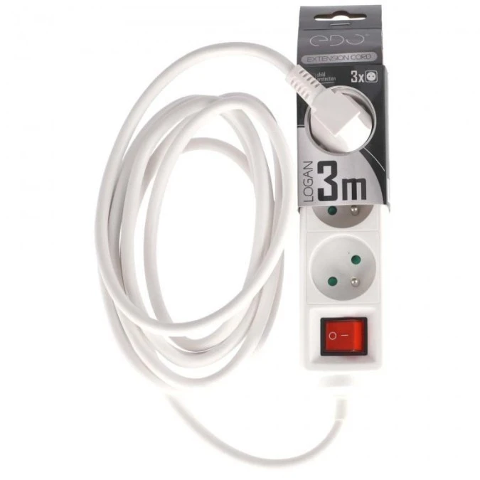 Przedłużacz domowy przenośny LOGAN White 3 - krotny z uziemieniem 3m z włącznikiem EDO777561 EDO