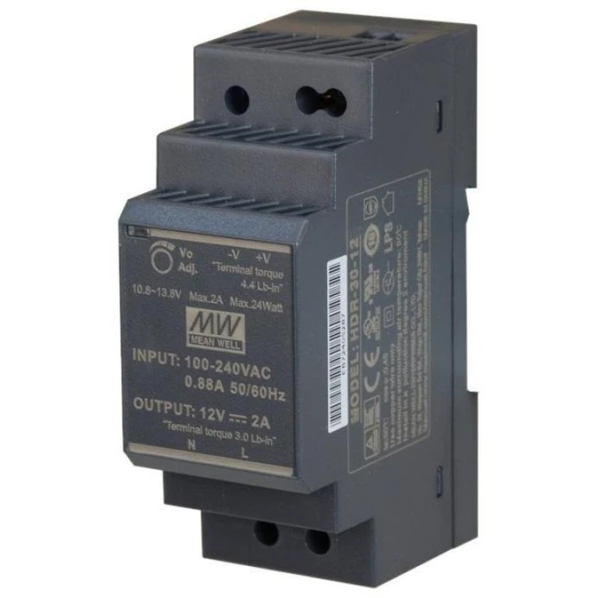 Zasilacz na szynę DIN 12V 2A 24W uniwersalny SLIM (2-modułowy) HDR Mean Well