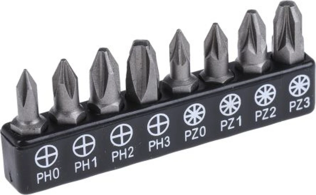 Zestaw końcówek, materiał Stal chromowo-molibdenowo-wanadowa, PH0 do PH3, PZ0 do PZ3, 8 szt.
