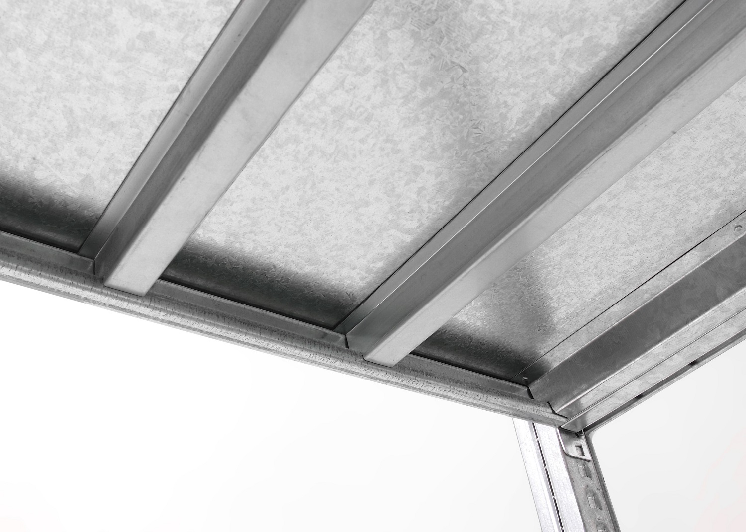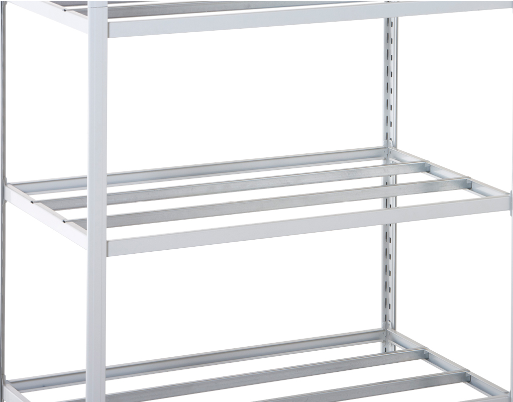 2. System półek, kolor RAL 7040, 4-poziomowy, materiał: Blacha stalowa galwanizowana x 1000mm, Manorga 148.01
