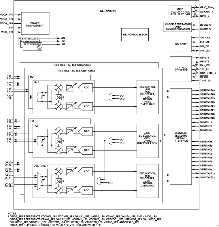 Integrated Dual RF Tx, Rx, and Observation Rx