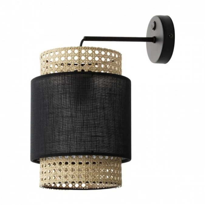 Połączenie materiałowego abażuru, wraz z rattanem ...